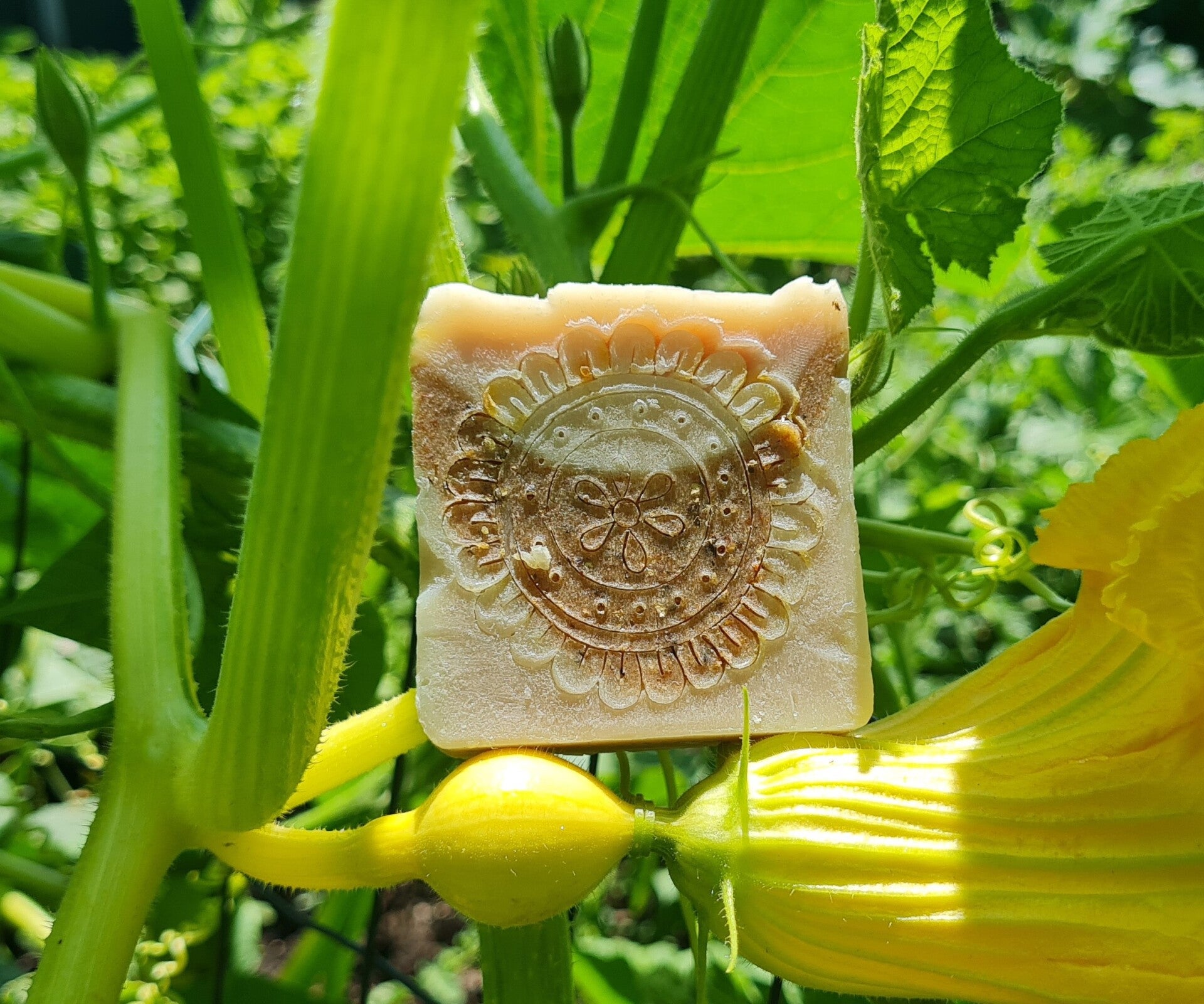 Inhaltsstoffe: Olivenöl, Sheabutter, Kokosnussöl, Kürbiskernöl, Rapsöl, Kakaobutter, geriebenen Kürbiskerne, Curcuma gemahlen, 8% Rückfettung