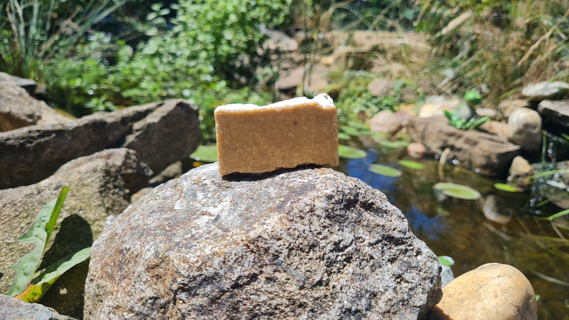 Inhaltsstoffe: Kokosnussöl, Sheabutter, Avokadoöl, Distelöl, Hanföl, Jojobaöl, Olivenöl, Rizinusöl, Himalaya Salz, Wascherde, ätherisches Patschuli-, Zimt-, Orange- + Zedernöl, 4% Rückfettung